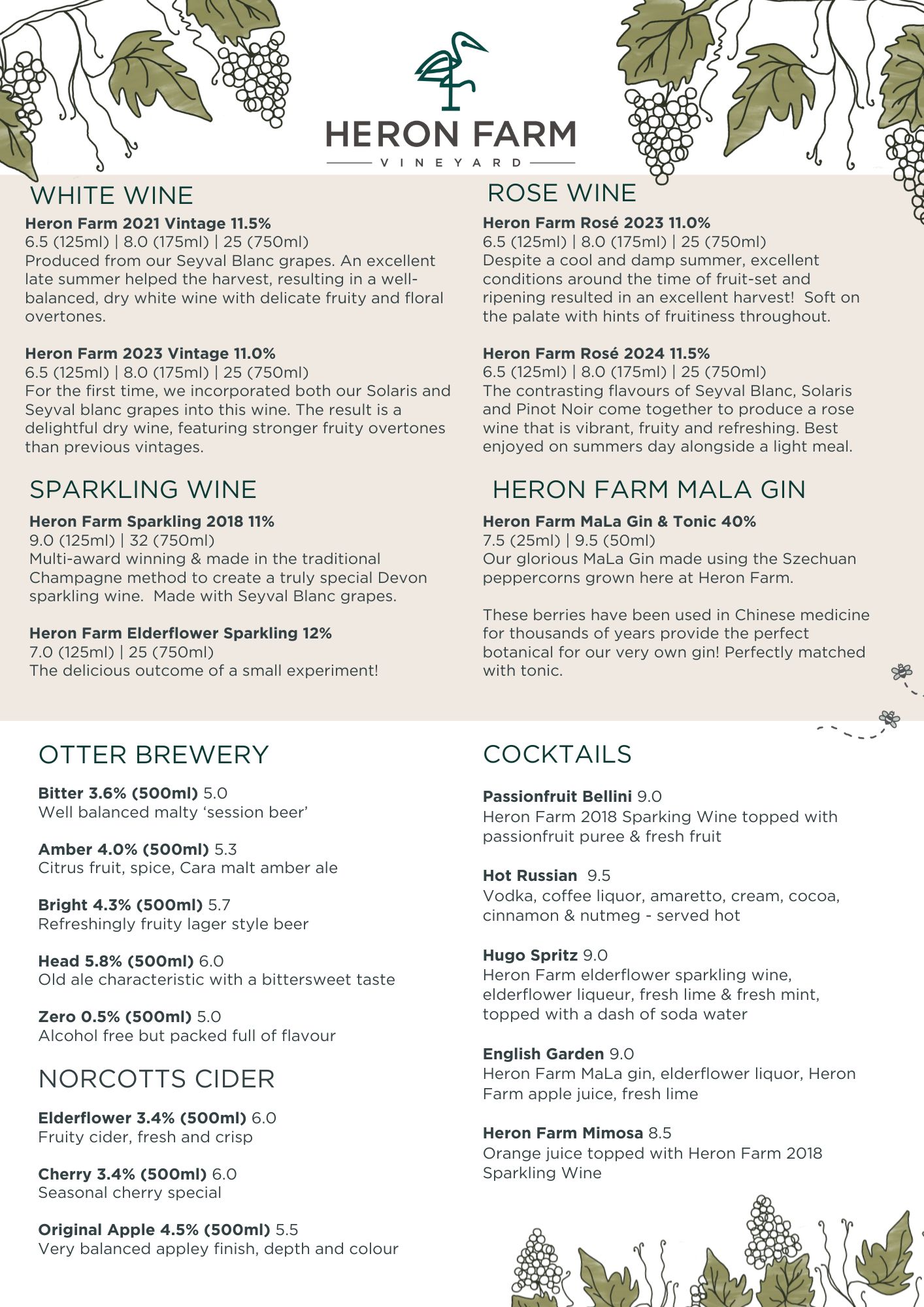 Our mezzanine offers the perfect space overlooking our walled gardens for groups of 20 – 40 people. Larger groups can enjoy private hire of the Farm and Vineyard for a bespoke package of tasty treats including barbecues, woodfired pizza and tapas or a traditional sit down meal.  Enquire via email at events@heron-farm.co.uk or online using the button below.