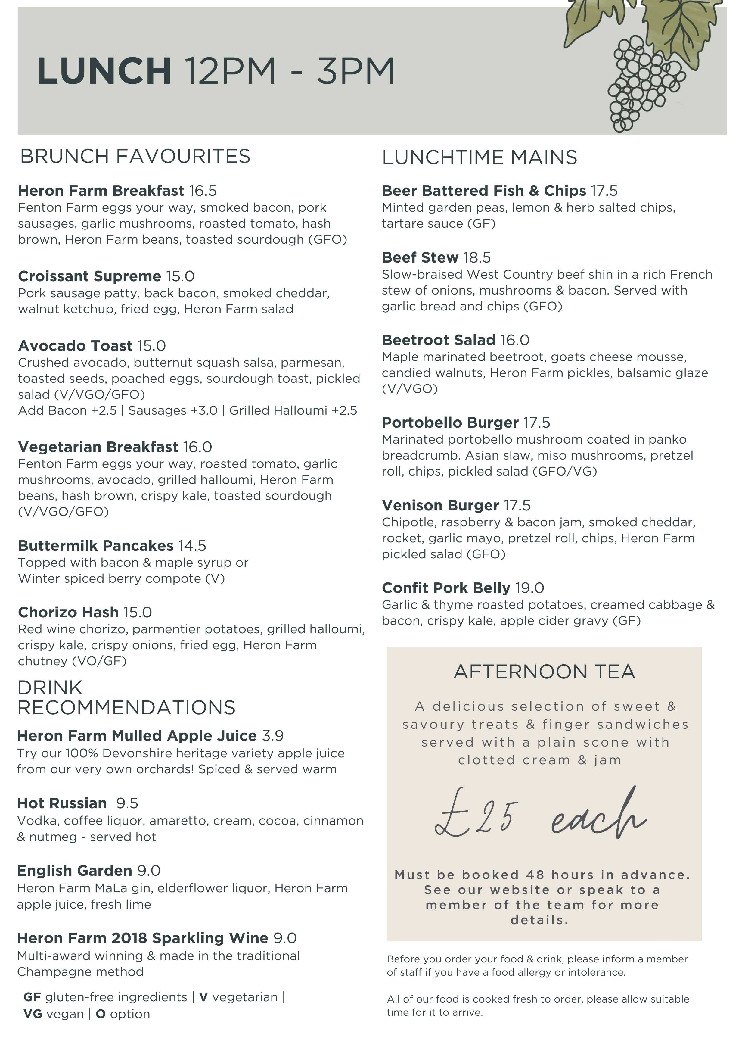 Perfect for groups of 20 or more.  Our sharing menu offers a taste of Heron Farm market garden and the best of locally sourced produce for our partner farms and suppliers across Devon.