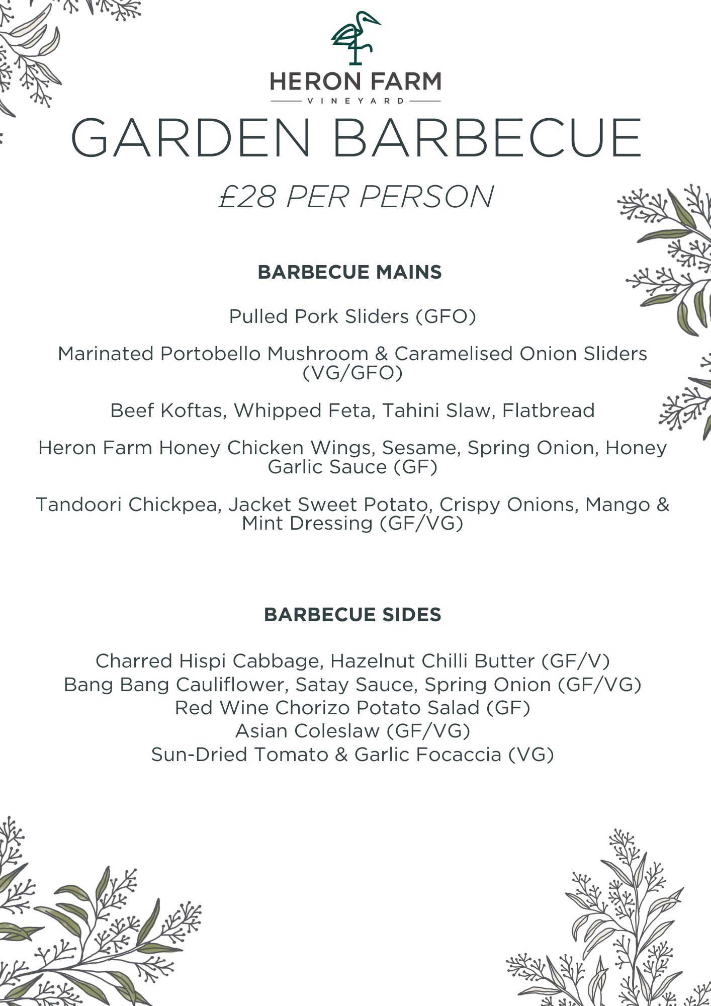 Perfect for groups of 30 or more.  Our sharing menu offers a taste of Heron Farm market garden and the best of locally sourced produce for our partner farms and suppliers across Devon.