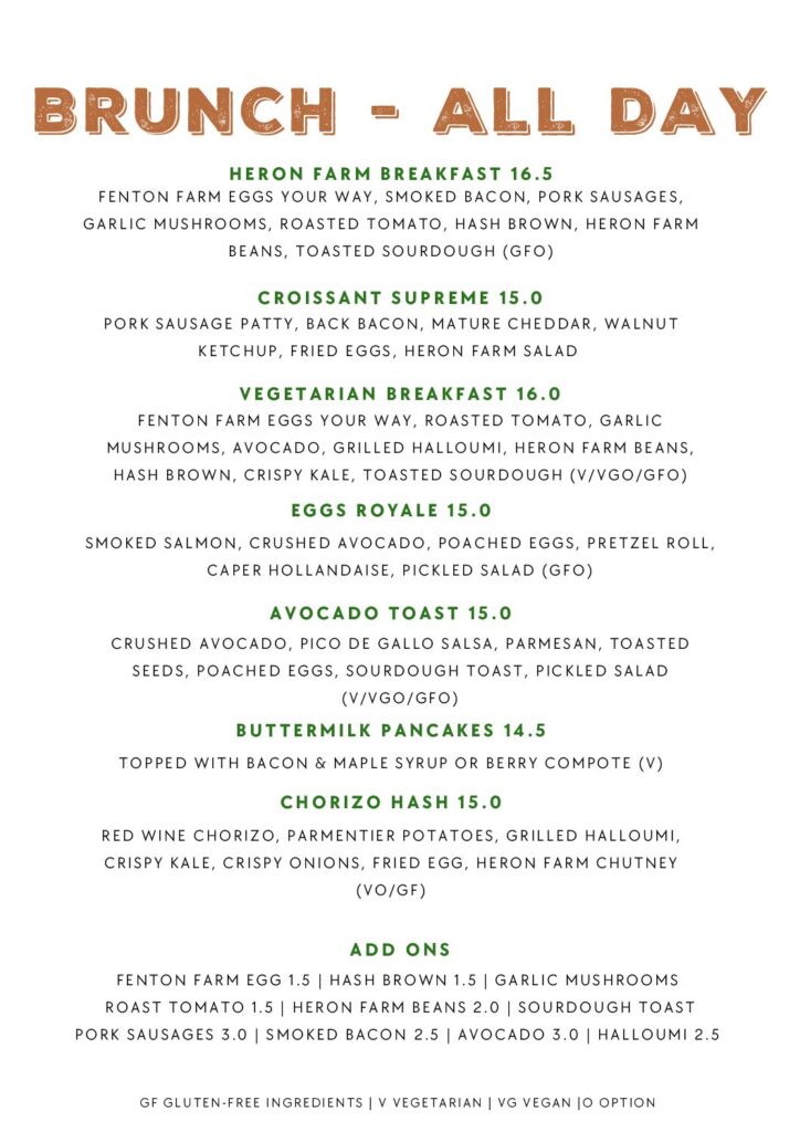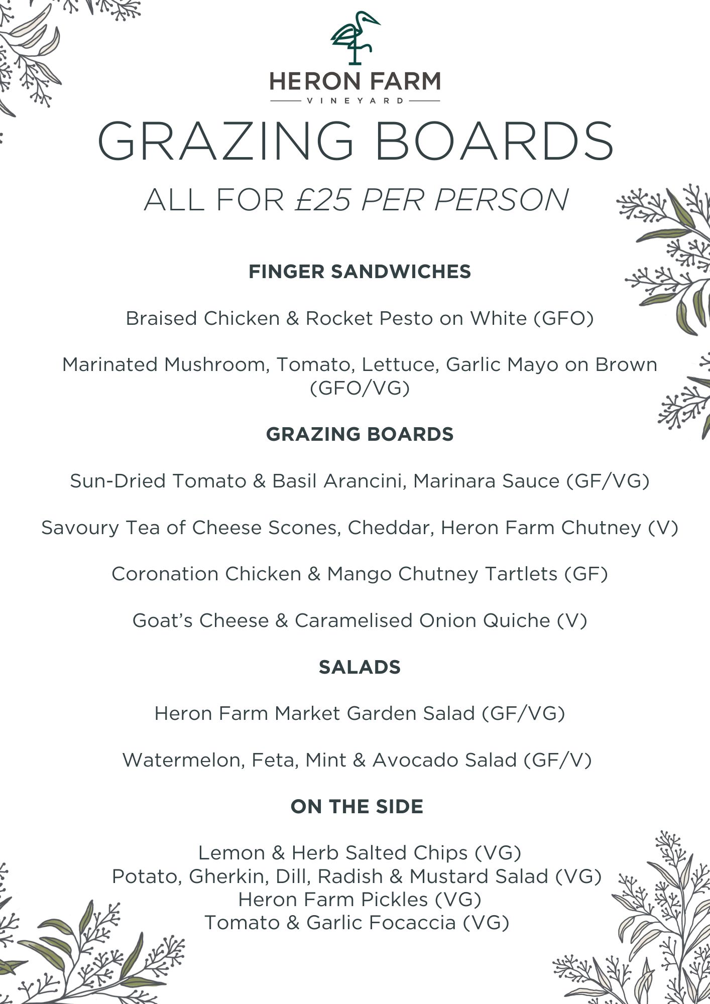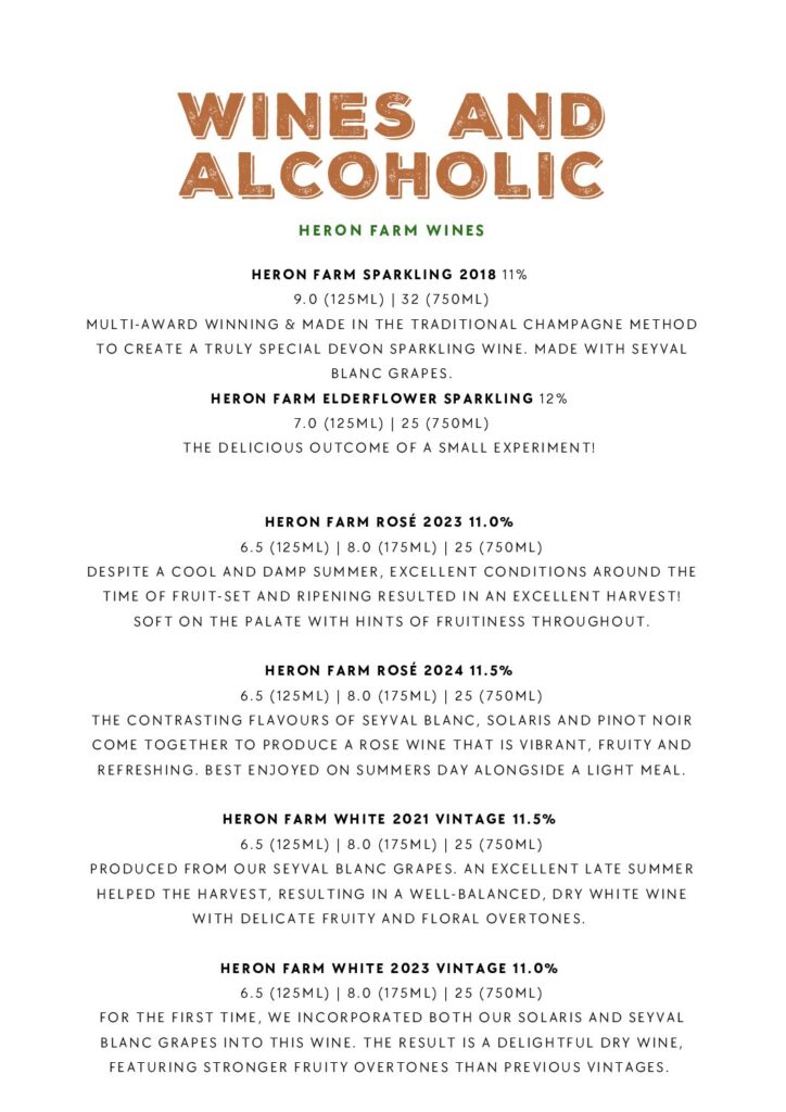 This menu is available for pre-order only with a minimum of 10 people or large group celebrations enjoying private hire of Heron Farm Vineyard