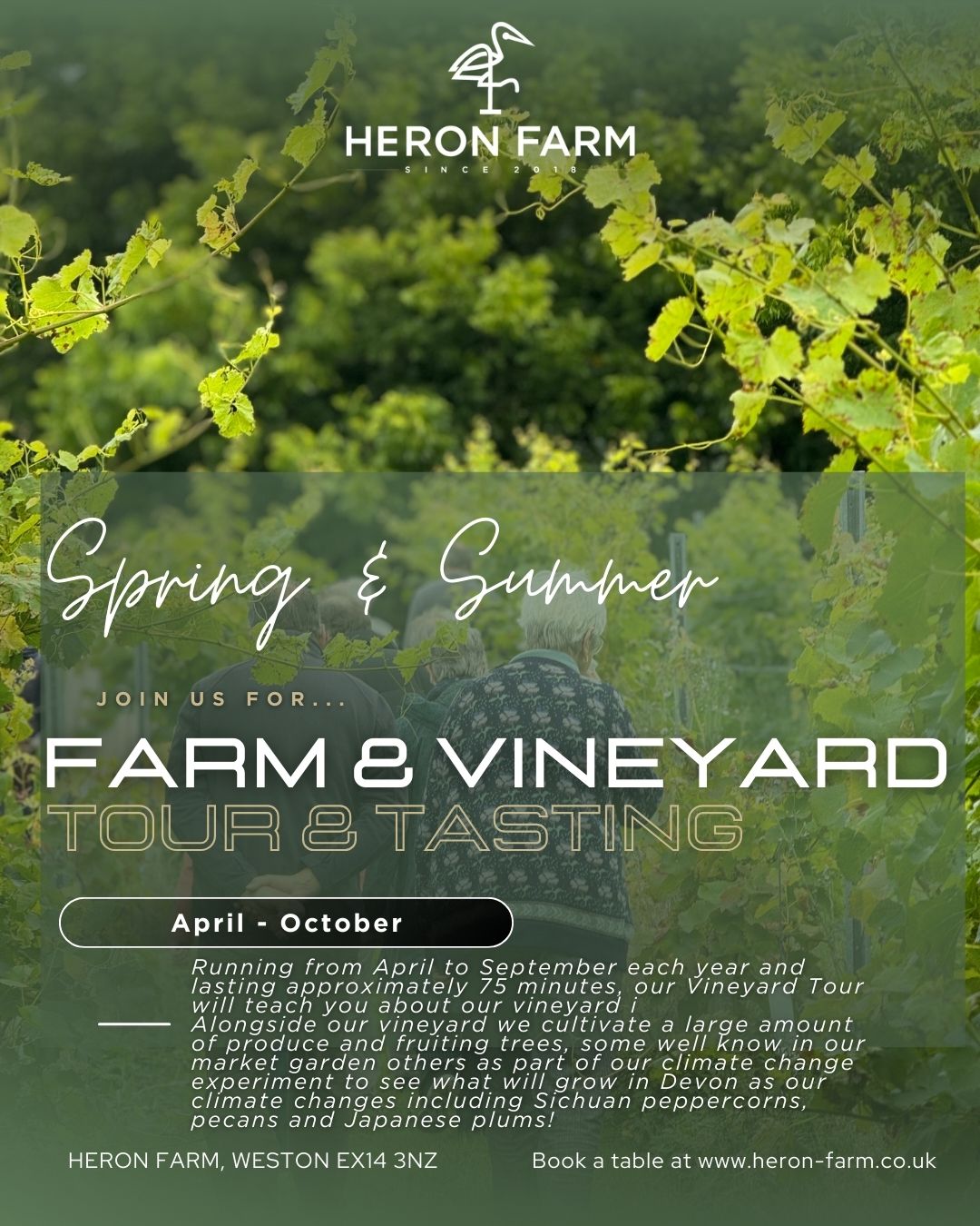 Along the way you will try some of the products we produce here at Heron Farm & Vineyard including the Honey, Jams & Chutneys from our market garden our very own Sichuan Peppercorn Gin and of course our award winning wine!